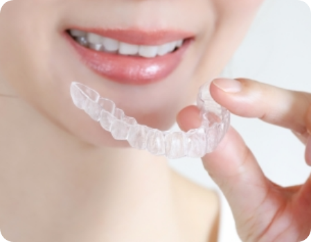 マウスピース矯正とは、透明なマウスピース型の装置で歯を動かします。ワイヤー矯正より目立たないのがメリットです。